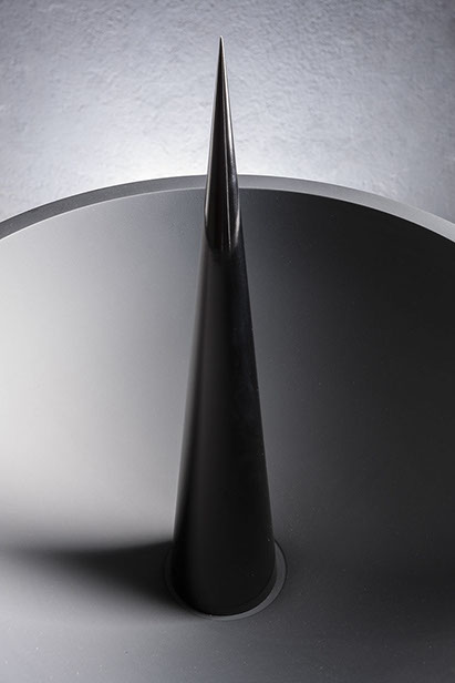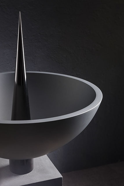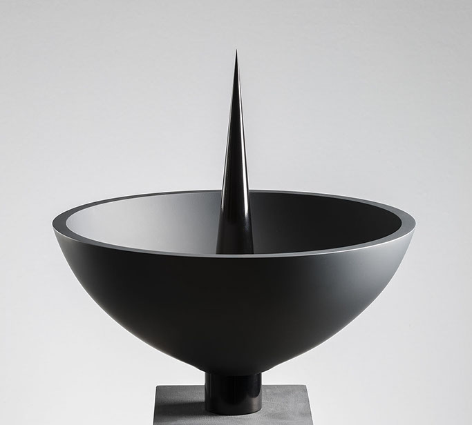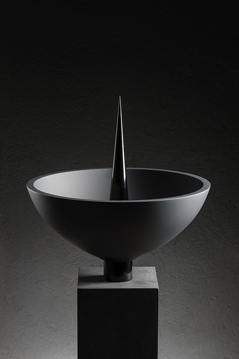 2017, alluminio anodizzato nero e corian, diametro 34×35 cm