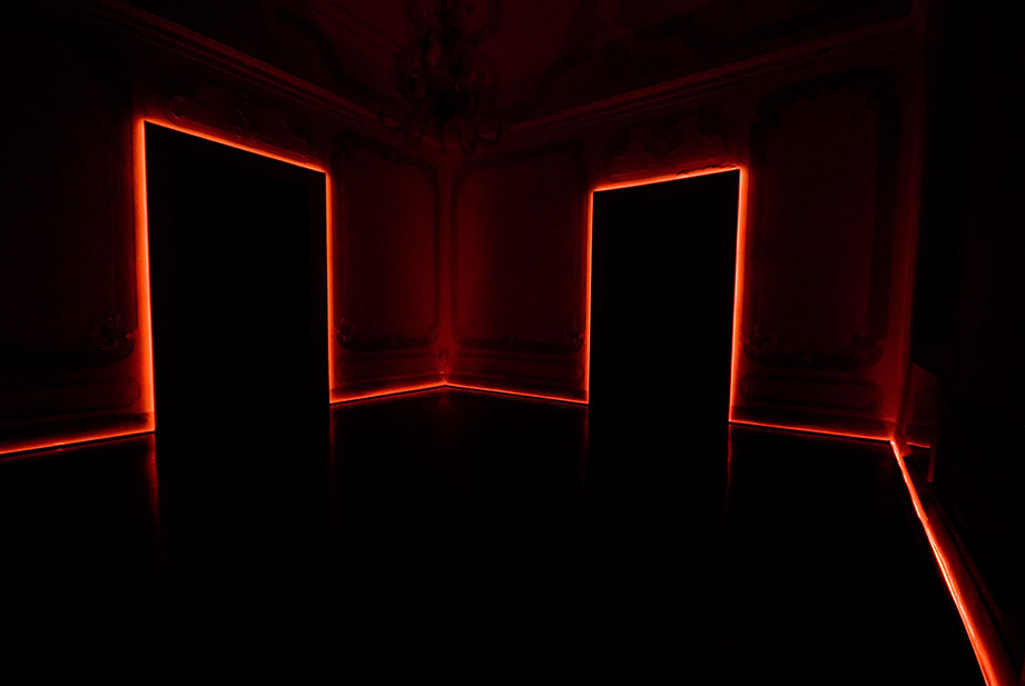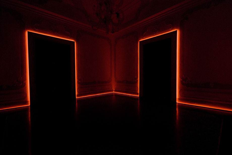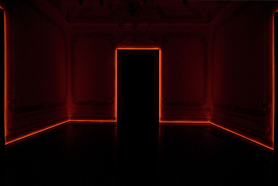 RL43330 è un installazione ambientale composta da una linea luminosa che taglia lo spazio in due parti: il pavimento dalle pareti.